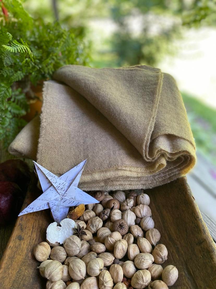 Blackberry Primitives Hand-dyed Wool ~ BOULDER. A lovely tan with lots of variation and hue. Can appear to have a bit of a gold tone, in certain light :). Just lovely. This one makes me think of aged ivory stockings, long past their prime, now being used as Christmas stockings..but maybe that's just me ;). My mind always goes to Christmas :).