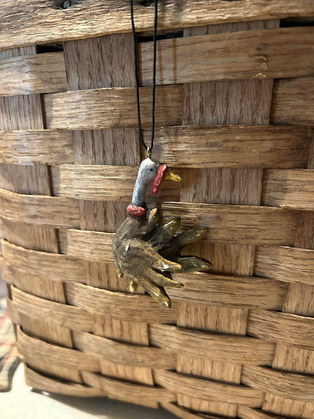 Spun Cotton Turkey ~ Two are available both very similar to each other. Both measure 2 1/4" long by 1 3/4" wide, with 35" black vintage cording.